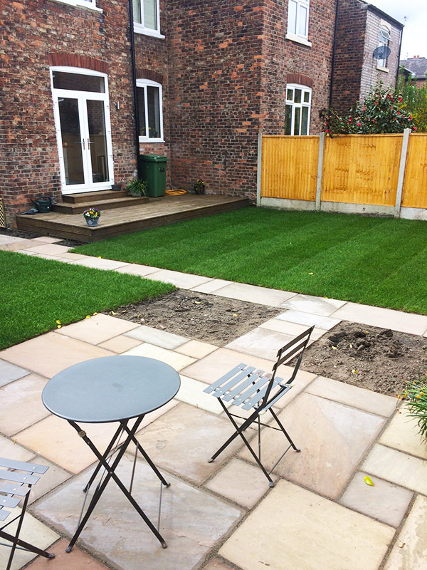 The Northern Landscapes team completed this garden make over last week, removing garage base and tired lawn and replacing with new Indian sandstone patio, new lawn, fencing and path. The customer absolutely loved it